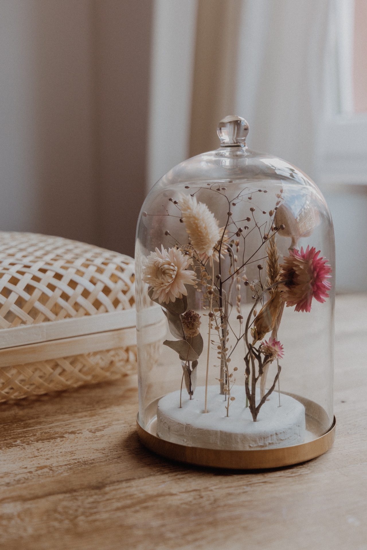 vor ein paar Wochen habe ich gemeinsam mit Merci Maman im Zuge des Launches der Geburtsblumen Kollektion ein Story-Takeover gemacht und gezeigt, wie man diese DIY Glasglocke mit Trockenblumen selbst machen kann. Sowohl als Deko im Regal als auch als Tischdeko bei Hochzeiten oder Ähnlichem ein absoluter Hingucker und vor allen Dingen individualisierbar. Bei der Wahl der Blumen und Gräser sind euch keine Grenzen gesetzt – daher folgt nun für alle, die das Takeover gesehen hatten oder nun neu bei diesem Beitrag sind die Schritt für Schritt Anleitung, wie ihr diese wunderbare DIY Glasglocke mit Trockenblumen nachmachen könnt.