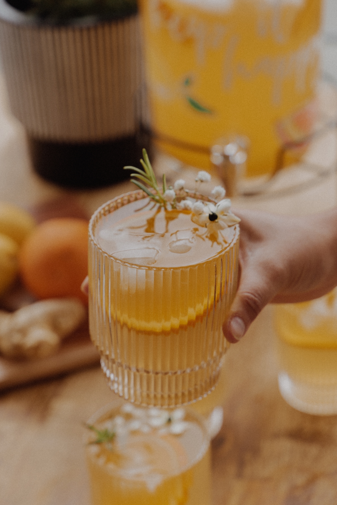 Der schön personalisierter Getränkespender braucht einen ebenso leckeren Inhalt! Und da ich den Sommer Zuhause regelmäßig meine hausgemachte Orangen-Rosmarin Limonade mache – Ab und an in verschiedenen Variationen mit weiteren Kräutern oder Früchten – möchte ich euch das Rezept dazu natürlich auch noch mit euch teilen. Denn was gibt es erfrischenderes als eine zitrische Erfrischung mit Kräuternoten? Man muss dazu sagen, dass ich alle Kräuter liebe und kaum nein zu hausgemachten Limos sagen kann, die Minze, Rosmarin, Thymian & Co. enthalten.