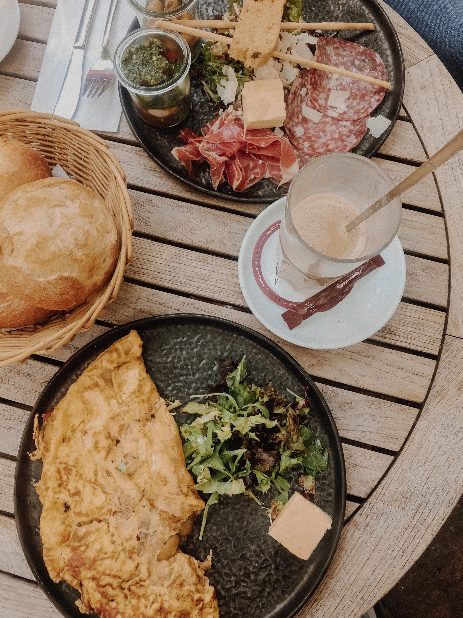 Ich persönlich nehme meist das Frühstück Barcelona (spanisches Omelett mit Speck, Zwiebeln und Tomaten sowie einem Brötchen) oder aber das Frühstück Florenz ( Prosciuto di Parma, Tomate & Mozzarella, luftgetrocknete salami, Oliven und Brötchen). Das Frühstück Barcelona bestelle ich meist ohne Speck und freue mich immer, dass ich dies auslassen kann und auf die Wünsche eingegangen wird. Zudem hat das Lammerskötter göttliche Brötchen – schon allein hierfür lohnt es sich! Außerdem liegt das Lammerskötter im Stadtteil Burscheid, das einen Spaziergang wert ist. Wenn man im Sommer draußen sitzt, schaut man sogar schön aufs Abteitor!